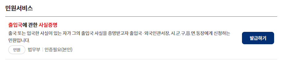 단, 출입국사실증명서의 경우 마지막 출국이나 입국 이후 2~3일 후부터 발급이 가능합니다.