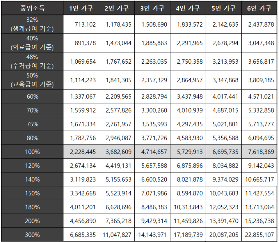 2024년 기준 중위소득 총정리