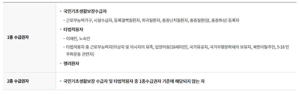 2종 의료급여 수급권자는 다음과 같은 혜택을 받습니다